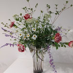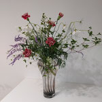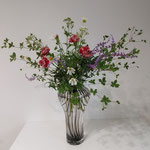 重いガラスの花びんなので大きく活けられ、のびのびした作品になりました。